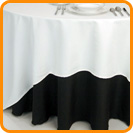 ![]() Our Linens for round banquet tables are white with your color choice overlay. View our color chart for our most popular colors. If you do not see the color you are looking for, ask us! |