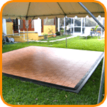 ![]() Our dance floors have a wood-like finish, come with full installation and delivery. Various sizes can be ordered depending on the size of your event. Contact us for pricing and information. Contact us for more information.Click here to view our selection. |